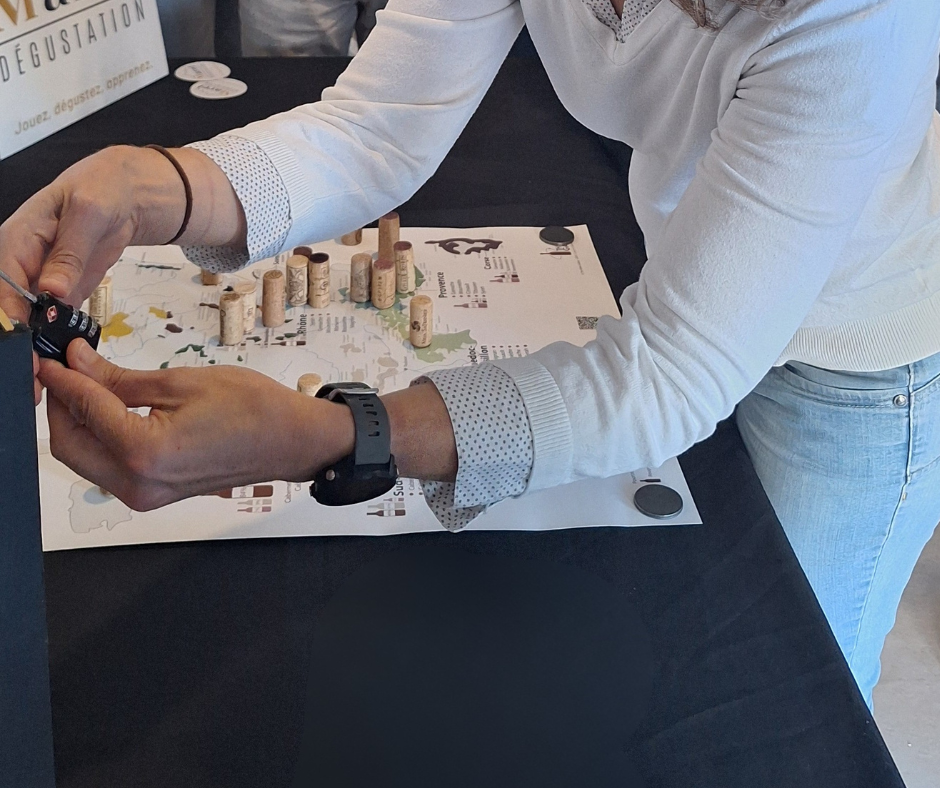 Contrairement aux dégustations classiques, ici vous apprenez en vous amusant. À travers des défis sensoriels et des activités ludiques, vous explorez les arômes, les cépages et les secrets du vin dans une ambiance détendue et accessible à tous.